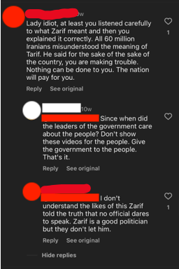 However, regardless of where they are, activists including Ariana face censorship from the Islamic Republic government. Authoritarian countries like the Islamic Republic are known to censor media such as TV, social media, and newspapers as a way to control opposition within the country and spread tailored information that targets the West, particularly the US. It also restricts mobilization amongst Iranian diasporas and possible interference from foreign countries. This restriction was so harsh that some activists fled the Islamic Republic in order to pursue activism, especially when tensions rose within the country and oppression of their freedom of speech increased, such as after the rigged 2009 elections and the Green Movement. Despite this, activists are still tirelessly targeted by the Islamic Republic and harassed online. This applies to Ariana as well.