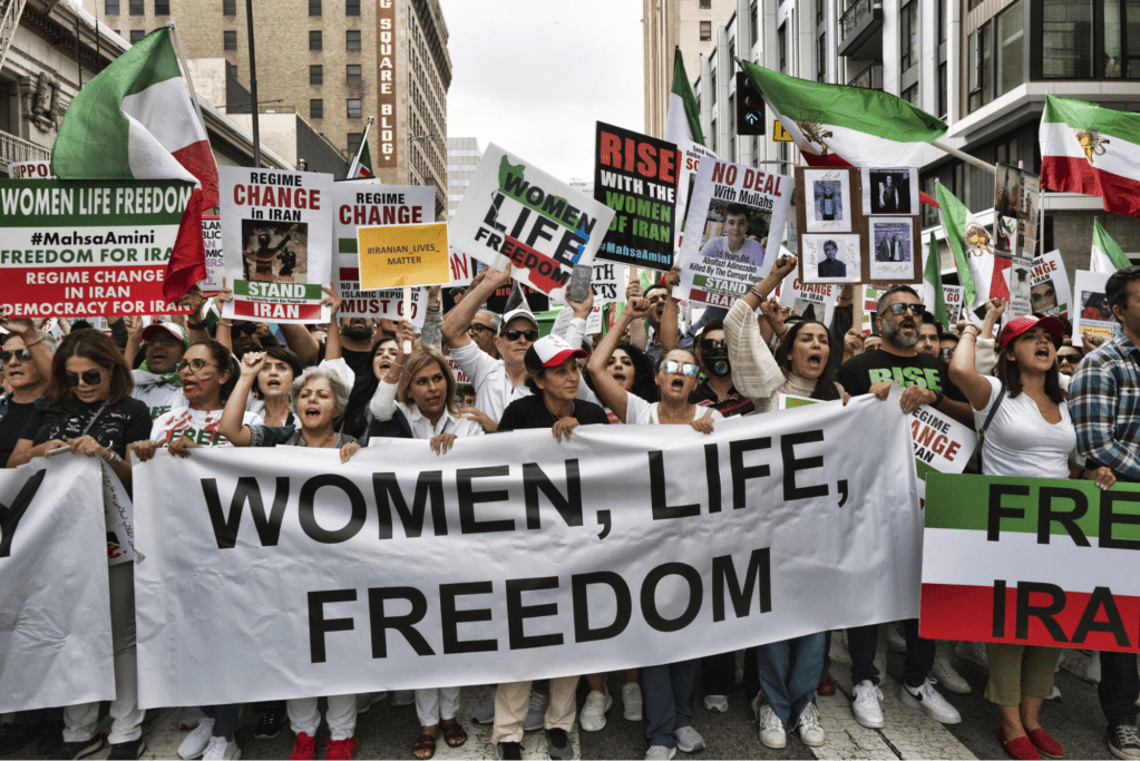 Right: “Women, Life, Freedom” protest held in Colorado, US (CPR News)