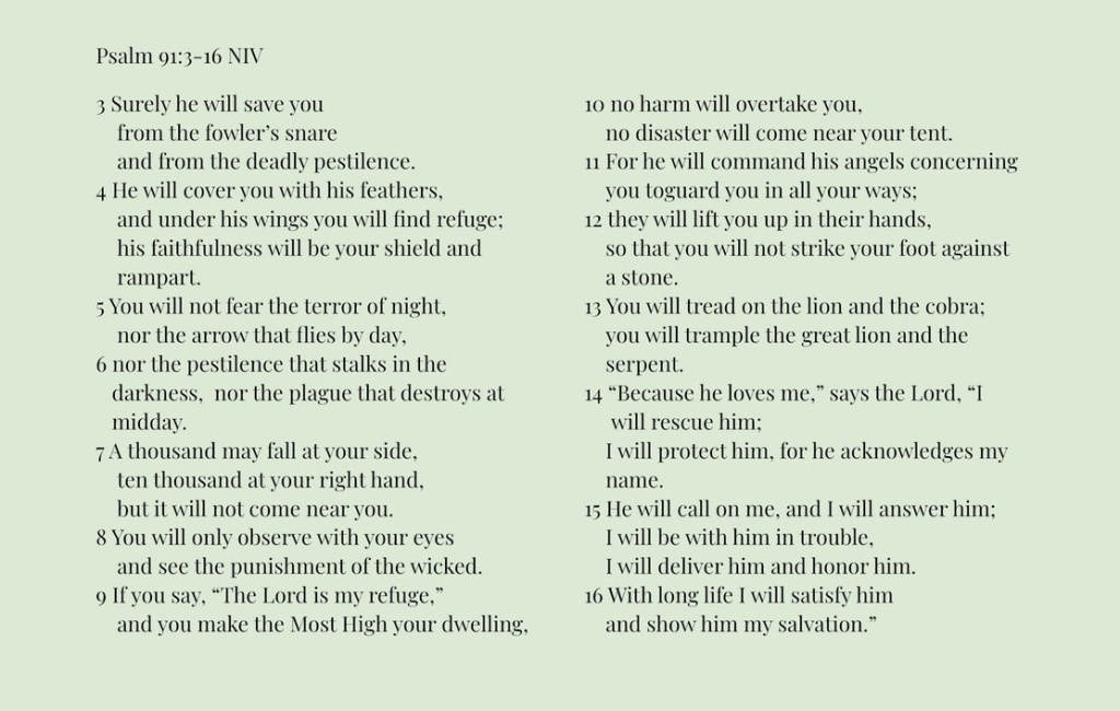 Gabriel states that he has prayed this prayer every day during his years in Japan, especially when he felt like he can no longer survive. He did this because he believes that when he prayed this psalm, he would somehow surely be protected from all diseases and harm. As he held onto this every day, this also gave him hope, continual perseverance, and faith to keep living life and to keep maintaining his health.