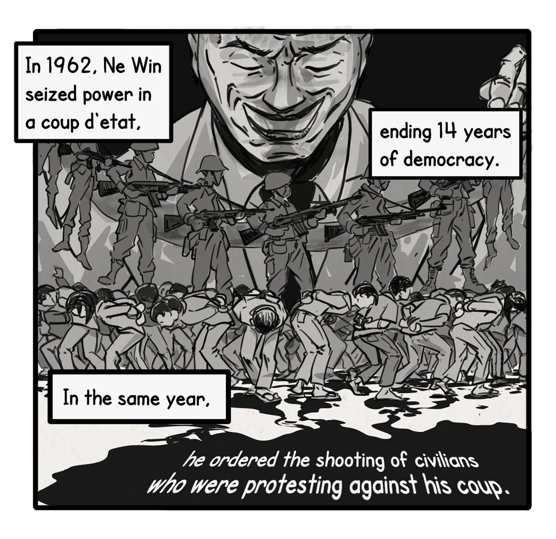 The nation has been through three phases of oppressive military regimes: from the most recent to the oldest, dictatorial power since the coup d’état involving Aung San Suu Kyi in 2021, a junta under Than Shwe from 1992 to 2011, and a dictatorship under Ne Win from 1962 to 1988. Between these periods, however, hopes of democracy were brought to the people of Myanmar. A recent example is the 2011 reforms, where although still backed by the military, the government launched a series of changes that aimed at political, social, and economic development. Another remarkable example is the student-led uprising that took place in 1988, commonly known as the 8888 Uprising as it occurred on August 8, 1988.