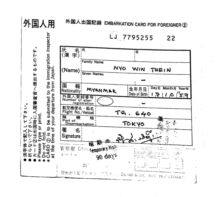 ニョーの前には長い旅が広がっていました。人生の新たな章をスタートさせるために、完璧な準備が必要でした。まずは国を出るためのビザの取得です。パスポートを持っていることはもちろん必須ですが、だからといって入国する資格があるとは限りません。特にミャンマーのパスポートではビザなしに渡航できる国は今も多くなく、194ヶ国の日本と比べ92ヶ国と大変少ない、東南アジア諸国連合(ASEAN)では最小となっています。ニョーが来日した1990年代はさらに少なく、たった5ヶ国でした。