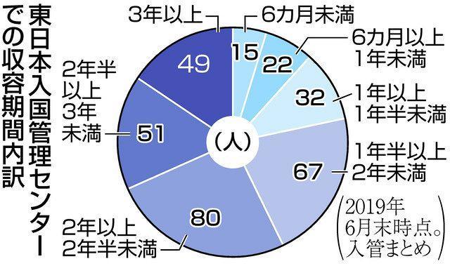 パトリックは午後に収容所に到着し、まず身体検査を受けました。携帯電話を手渡さなければならず、長い間見ることはできないと言われました。その後収容者用の靴をもらい、建物を通って小さな部屋に連れて行かれました。彼はまだ知らなかったのですが、これからの25ヶ月をここで過ごすとは、当時のパトリックは思ってもみませんでした。現在日本には、さまざまな理由で外国人を収容するための施設が17ヶ所あり、収容者には難民申請者も含まれます。本来は短期間収容するための施設だったのですが、収容期間はどんどん長くなっており、強制送還前に8年間収容されたケースもあります。グラフを見ると牛久収容所に2年以上収容されている人が圧倒的に多く、パトリックもすぐに身をもって知ったように、長期収容は珍しいことではありません。